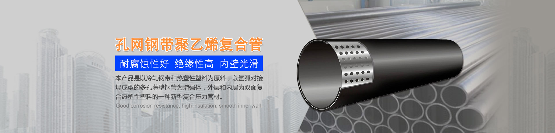 我們主要生產(chǎn)銷售:鋼絲網(wǎng)骨架復合管、鋼絲網(wǎng)骨架聚乙烯復合管、孔網(wǎng)鋼帶聚乙烯復合管、鋼骨架聚乙烯塑料復合管、電熔管件、HDPE中空壁纏繞管、HDPE內(nèi)肋增強螺旋波紋管、HDPE結(jié)構(gòu)壁增強B型管等一系列產(chǎn)品。復合管以其特有的防腐蝕、耐磨、耐高溫、抗嚴寒、耐壓、抗蠕變、穩(wěn)定性好、安裝方便等特點,逐步取代各類金屬管件和塑料管件,被應(yīng)用于消防、石油、化工、供水、采礦、海水輸送等領(lǐng)域...